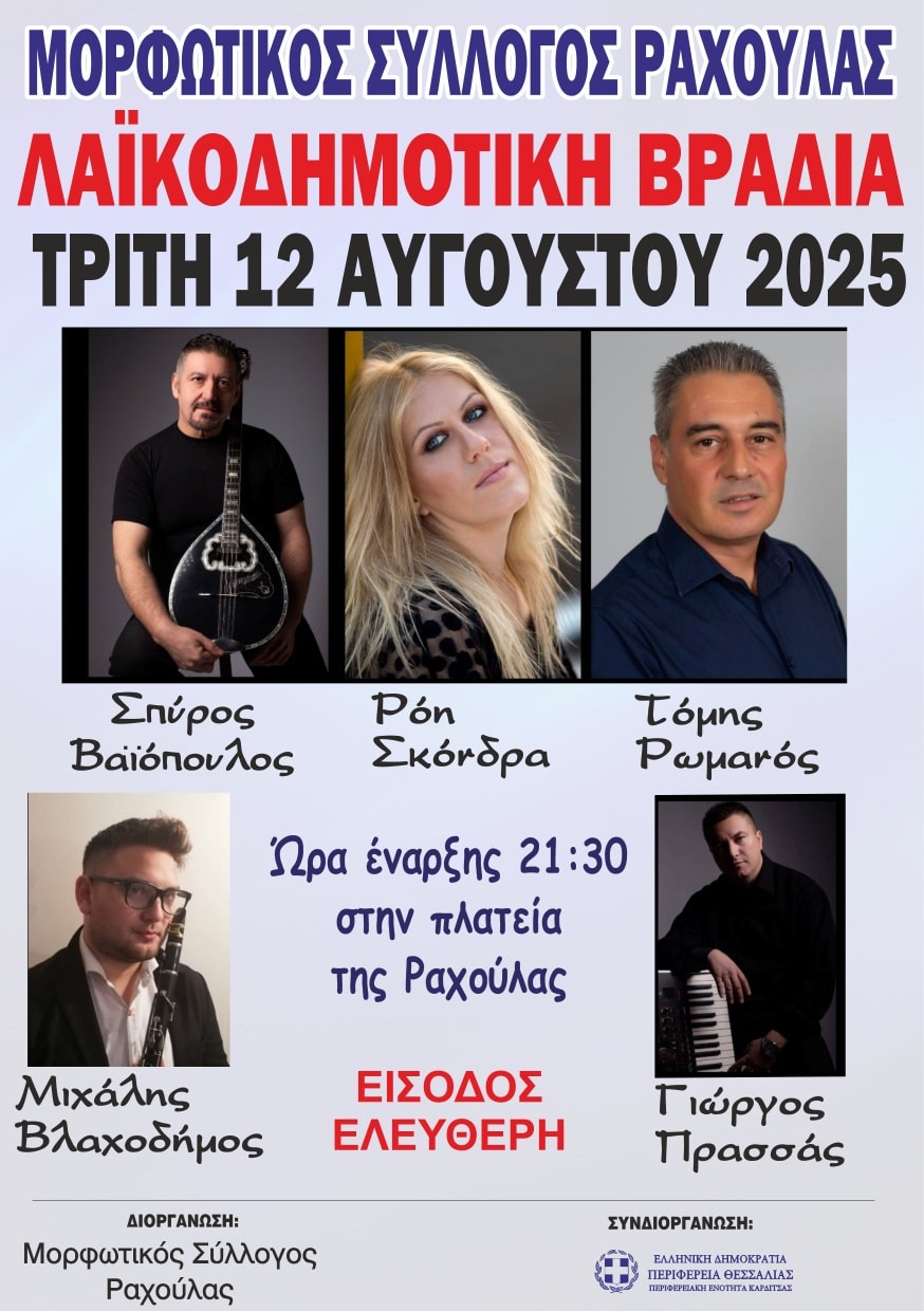 Οι Ραχουλιώτισσες και οι Ραχουλιώτες σας περιμένουν στην πλατεία με είσοδο ελεύθερη.