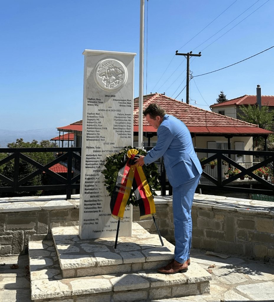 Ο κ. Strohmenger ανέφερε ότι είναι αδιανόητα όσα έγιναν κατά τον δεύτερο Παγκόσμιο Πόλεμο και ότι δεν πρέπει να έχουμε ποτέ πια παρόμοια τραγικά γεγονότα. Ακολούθησε συμβολική κατάθεση στεφάνου στο μνημείο των πεσόντων του Μορφοβουνίου και επίσκεψη στο Υπαίθριο Μουσείο Σύγχρονης Τέχνης.