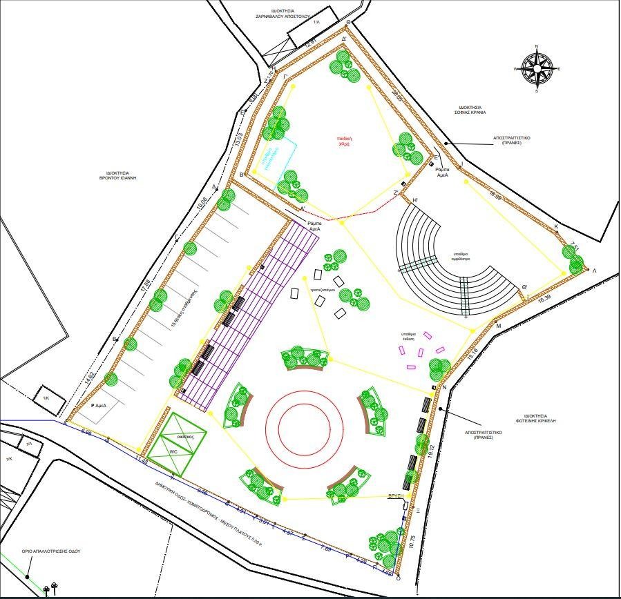σχέδιο πλατείας Καλυβίων Πεζούλας 3,5 στρεμμάτων